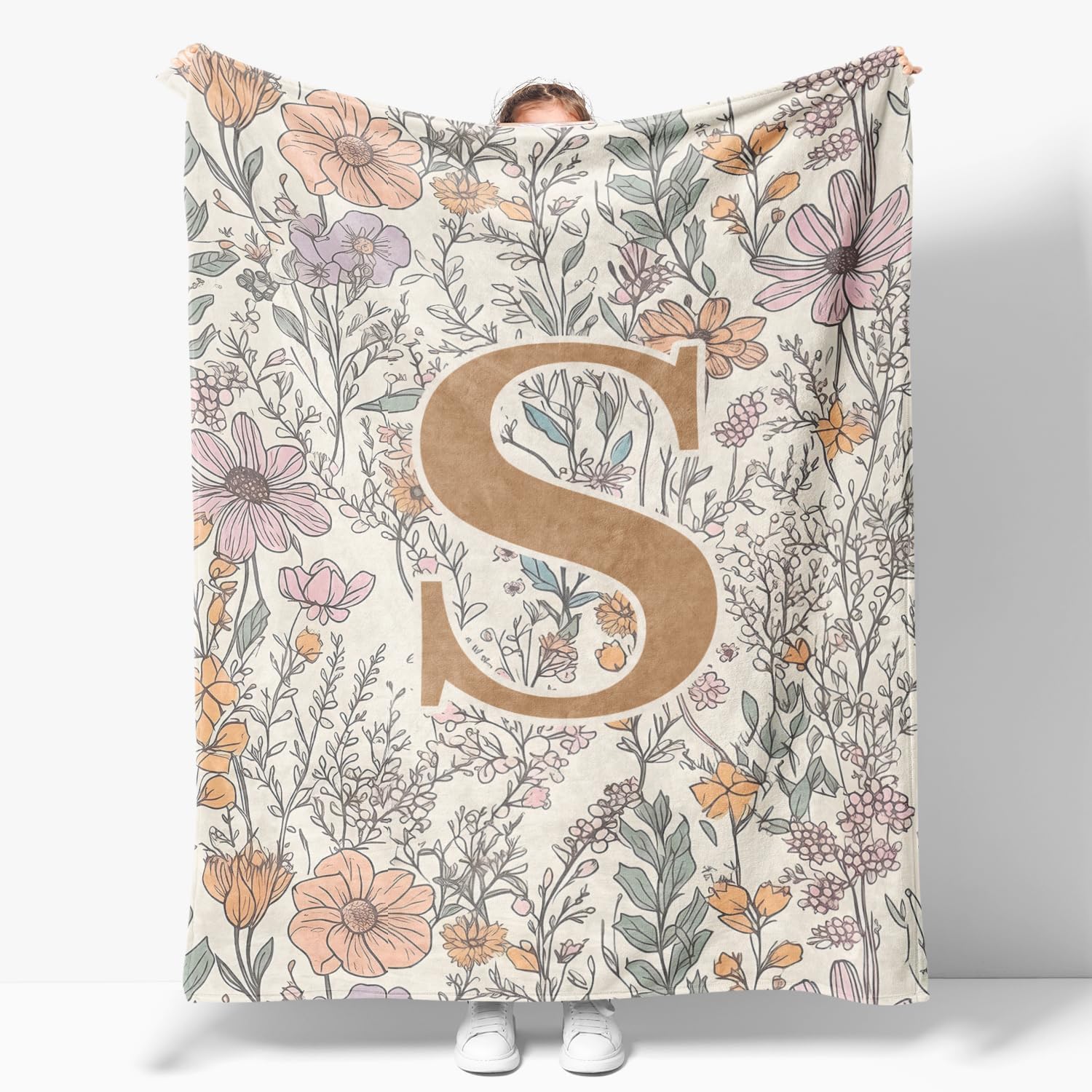 Measuring 50 x 60 inches, this personalized blanket features a stylish monogram and floral design, offering the perfect balance of warmth and lightweight comfort. Its moderate thickness adds cozy softness without bulk—an elegant accent for your home and a festive touch for the holiday season.
