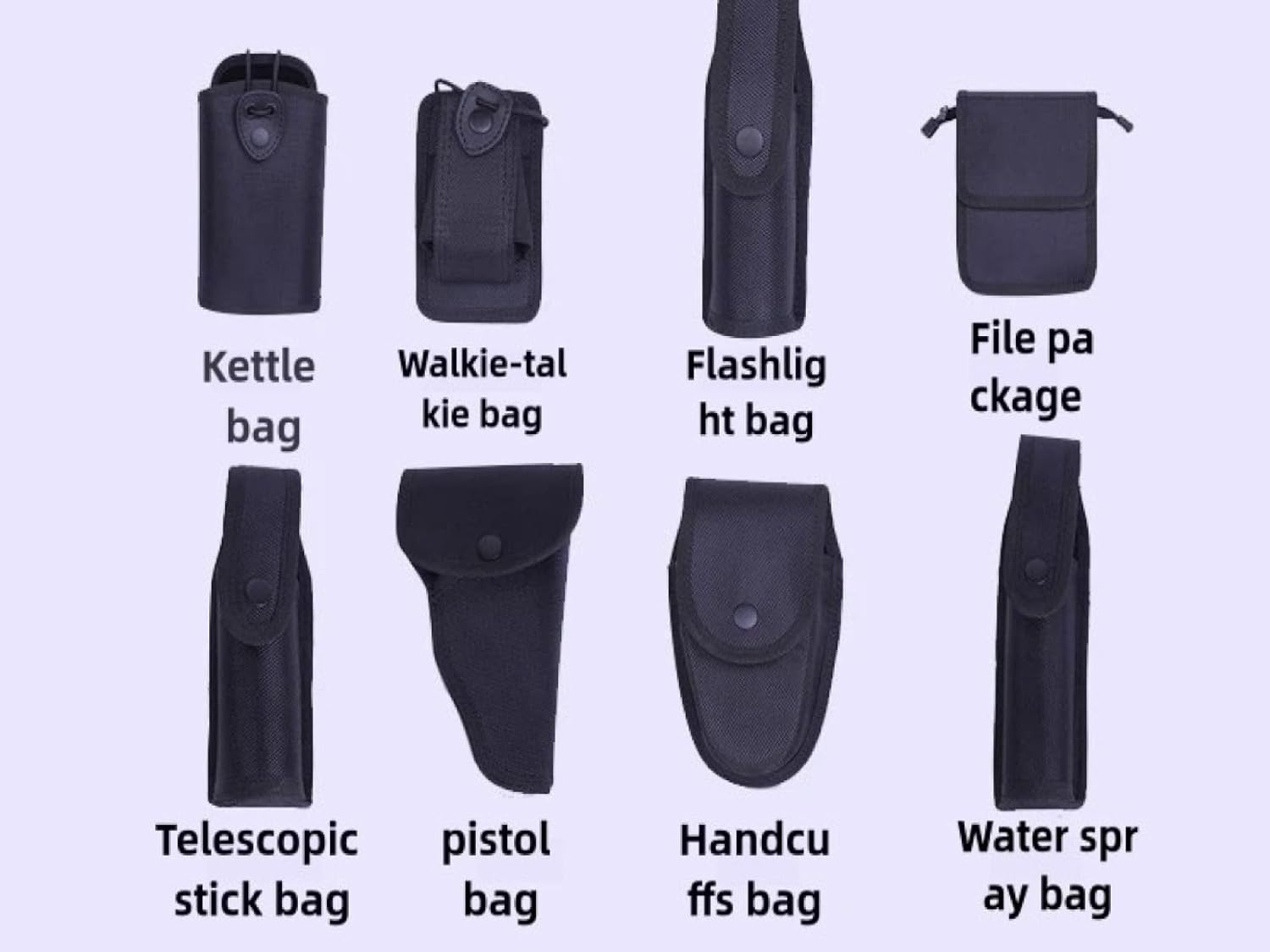| Included Components | Handcuff Bag, Handgun Bag, Walkie-talkie pack, Water Bottle Bag |
